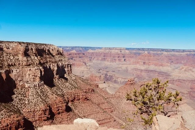 Leaving Williams after a leisurely breakfast, we had a drive of just over an hour to El Tovar, a historic hotel overlooking the south rim of the breathtaking Grand Canyon. It’s a running theme through this blog, but it really is hard to find the words to describe the stunning views and scale of the Canyon from this vantage point. The Canyon is a geological marvel, stretching nearly 280 miles in length, 18 miles wide and over a mile deep, carved by the mighty Colorado River over millions of years. The colours are beautiful, deep reds, oranges, purples and greys, changing all the time as the sun moves across its landscape.